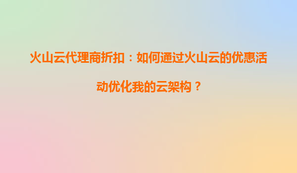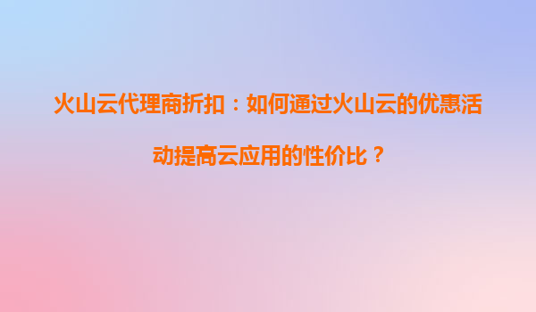 2025-08-21火山云代理商折扣:如何通过火山云的优惠活动提高云应用的性价比? 在当今数字化时代,云计算已成为企业数字化转型的关键基础设施。而选择合适的云服务提供商,不仅能帮助企业降低成本,还能提升效率。火山云作...