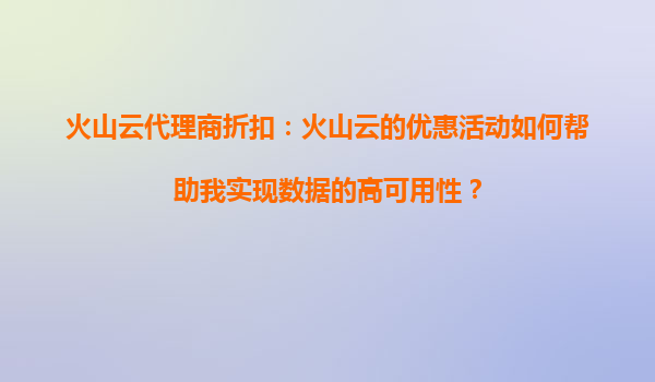 火山云代理商折扣:火山云的优惠活动如何帮助我实现数据的高可用性? 一、火山云的独特优势助力数据高可用性 在当前数字化时代,数据高可用性已成为企业运营的核心需求。火山云作为领先的云计算服...