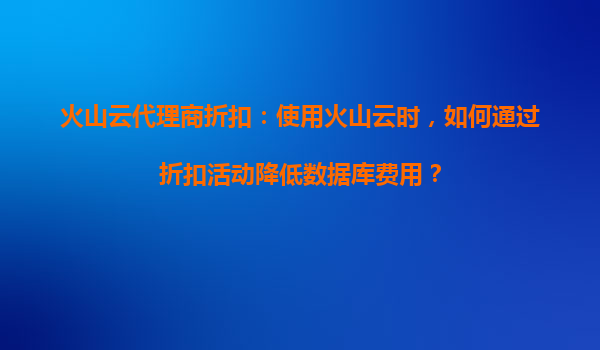2025-08-21火山云代理商折扣:如何通过折扣活动降低数据库费用 1.火山云的优势与数据库服务特点 火山云作为领先的云计算服务提供商,其数据库产品(如RDS、NoSQL等)具备高性能、高可用、弹性扩展等核心优势。...