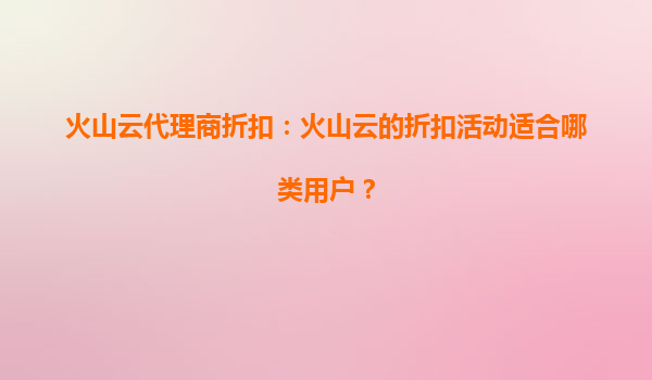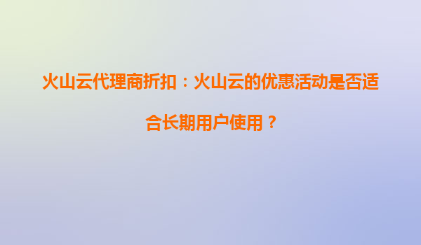 2025-08-21火山云代理商折扣:火山云的优惠活动是否适合长期用户使用? 引言 近年来,随着云计算技术的快速发展,越来越多的企业开始选择云服务来提升业务效率和降低运营成本。火山云作为国内领先的云服务提...