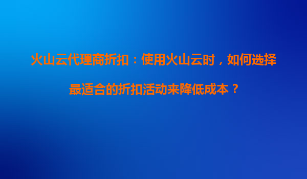 2025-08-21火山云代理商折扣:选择最适合的折扣活动以降低成本的实用指南 一、火山云的核心优势与成本优化基础 作为领先的云计算服务提供商,火山云凭借弹性资源伸缩、多区域覆盖及高安全性等特点备受企业青睐...