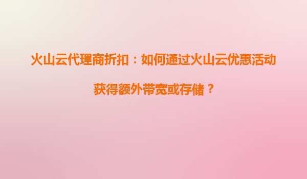 2025-08-19火山云代理商折扣:火山云优惠活动如何帮助企业提升部署灵活性? 一、火山云优惠活动的核心价值 火山云作为企业级云计算服务提供商,通过代理商折扣和限时优惠...