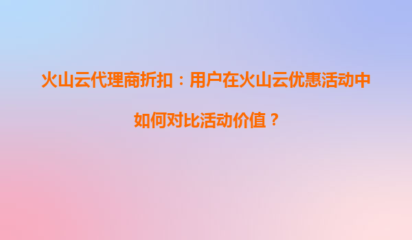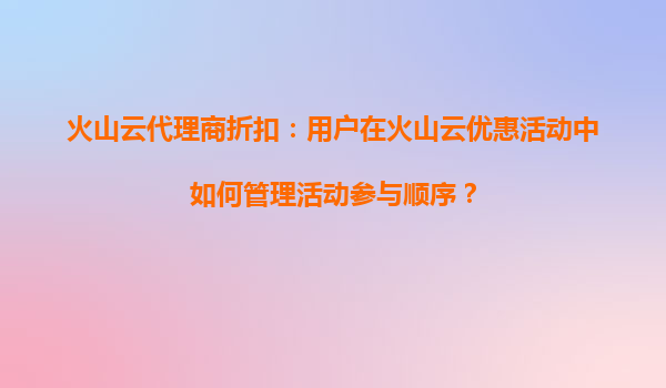 2025-08-18火山云代理商折扣:用户在火山云优惠活动中如何管理活动参与顺序? 一、火山云的核心优势 火山云作为领先的云计算服务提供商,凭借其高性能计算资源、弹性扩展能力和全球覆盖的数据中心网络,为用户提供稳...