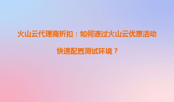 2025-08-18火山云代理商折扣:如何通过火山云优惠活动快速配置测试环境? 一、火山云的核心优势 火山云作为字节跳动旗下的云计算服务平台,凭借其高性能、高可靠性和灵活的资源配置能力,成为企业搭建测试环境的理想...