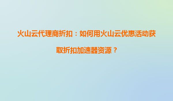 2025-08-18火山云代理商折扣:如何用火山云优惠活动获取折扣加速器资源? 一、火山云及其代理商的优势 火山云是字节跳动旗下的云计算服务品牌,提供高性能、高可靠的云服...