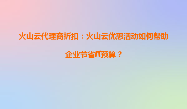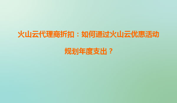 2025-08-17火山云代理商折扣:火山云优惠活动如何帮助企业优化资源分配? 一、引言 在数字化转型的浪潮下,云计算已成为企业优化运营效率、降低成本的核心工具。火山云作为领先的云服务提供商,凭...