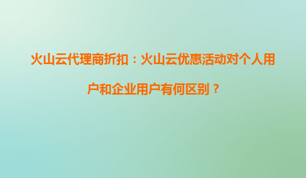 火山云代理商折扣:火山云优惠活动对个人用户和企业用户的区别详解 一、火山云的核心优势 作为字节跳动旗下的云计算服务品牌,火山云凭借以下核心优势成为行业新锐: 全球基...