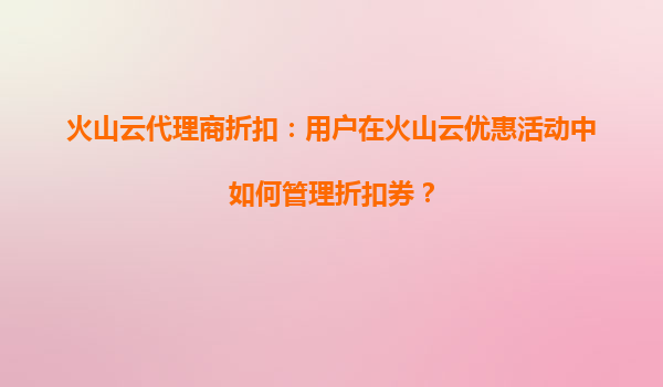 2025-08-17火山云代理商折扣攻略:轻松管理优惠券,挖掘上云最佳性价比在数字化转型浪潮下,云计算已成为企业降本增效的核心工具。作为国内领先的云服务提供商,火山云凭借高性能基础设施和多样化产品矩阵,为企业提供稳定...