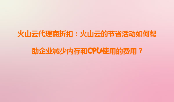 2025-08-16火山云代理商折扣:火山云的节省活动如何帮助企业减少内存和CPU使用的费用? 引言 在当今数字化时代,云计算已成为企业IT基础设施的核心组成部分。然而,随着业务规模的扩大,内存和CPU...