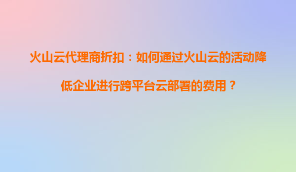 2025-08-16通过火山云代理商折扣优化企业跨平台云部署成本 火山云的核心优势与跨平台部署价值 在数字化转型浪潮中,企业多平台混合云部署已成为新常态。火山云凭借其强大的技术架构和灵活的计费模式,为企业提供了显著的...