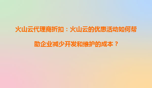 火山云代理商折扣:火山云的优惠活动如何帮助企业减少开发和维护的成本? 一、引言:企业成本压力与云计算机遇 在数字化转型浪潮中,企业普遍面临高额的IT基础设施开发...