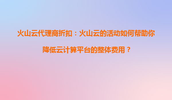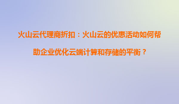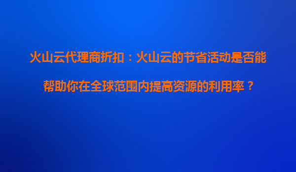 2025-08-16火山云代理商折扣:火山云节省活动如何助力全球资源利用率提升 一、引言:数字化转型中的云计算核心作用 在全球化与数字化转型浪潮中,云计算成为企业优化资源...