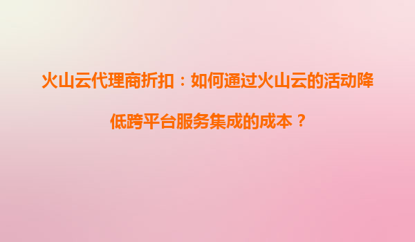 2025-08-16火山云代理商折扣:如何通过火山云的活动降低跨平台服务集成的成本? 一、引言 在数字化浪潮席卷全球的今天,企业需要通过跨平台服务集成来提升业务灵活性和效率。然而,这一过程往往伴随着高昂的...