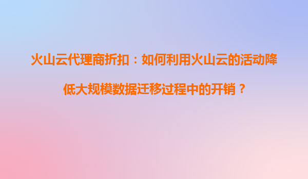 2025-08-15火山云代理商折扣:如何利用火山云的活动降低大规模数据迁移过程中的开销? 引言 在数字化转型的时代,越来越多的企业开始将业务迁移到云端,以享受云计算带来的弹性、高可用性和成本优势。然而,大规模数...