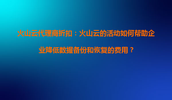 2025-08-15火山云代理商折扣:如何通过火山云活动降低企业数据备份与恢复成本 一、数据备份与恢复的痛点与企业需求 在数字化时代,数据已成为企业的核心资产。然而,传统的数据备份与恢复方案往往面临以下挑战...