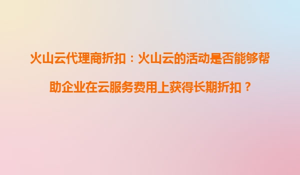 2025-08-15火山云代理商折扣:助力企业实现云服务长期成本优化 一、活动折扣机制解析 火山云通过代理商体系推出阶梯式折扣政策,当企业采购金额达到不同阈值时,可享受最高达30%的固定折扣率。这种模式不同于短期促销,而...