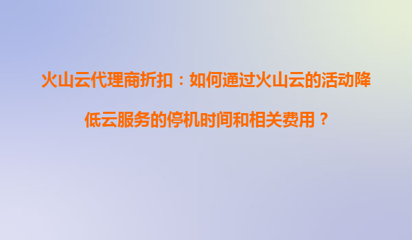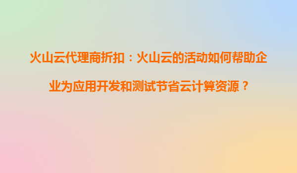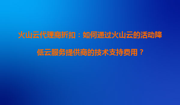 火山云代理商折扣:如何通过火山云的活动降低云服务提供商的技术支持费用? 一、火山云的竞争优势与代理商合作价值 火山云作为国内领先的云计算服务商,凭借高性能基础设施、弹性计费模式和行业级解决方案...