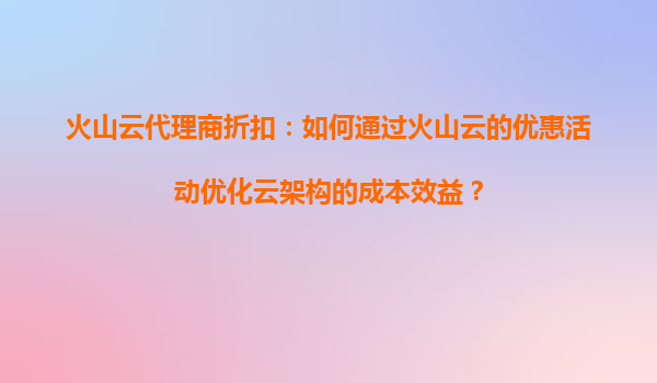 2025-08-15火山云代理商折扣:如何通过火山云的优惠活动优化云架构的成本效益? 一、火山云的核心优势与成本优化潜力 火山云作为字节跳动旗下的云计算服务品牌,凭借全球基础设施布局、弹性计算能力及大数...