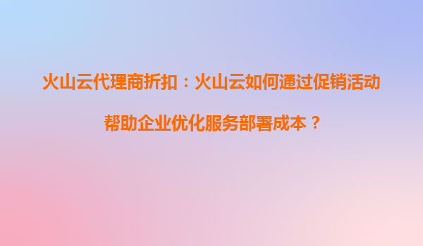 2025-08-13如何通过火山云代理商折扣活动优化云迁移成本? 火山云代理商折扣活动的核心价值 火山云通过代理商体系为企业提供阶梯式折扣政策,新用户首单最高可享5折优惠,长期合作客户还可获得定制化资源包。这...