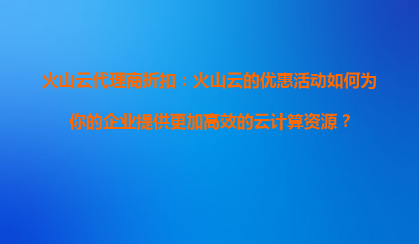 2025-08-13火山云代理商折扣:火山云的优惠活动如何为你的企业提供更加高效的云计算资源? 一、火山云的独特优势与价值 火山云作为国内领先的云计算服务提供商,凭借其强大的技术实力和丰富的行业经验,为企...