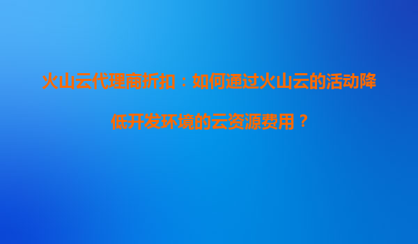 2025-08-13火山云代理商折扣:火山云的节省活动如何帮助你优化云计算服务的费用结构? 引言 在当今数字化时代,云计算已成为企业IT基础设施的核心组成部分。对于企业而言,如何高效利用云计算资源并降低成本是至关重...