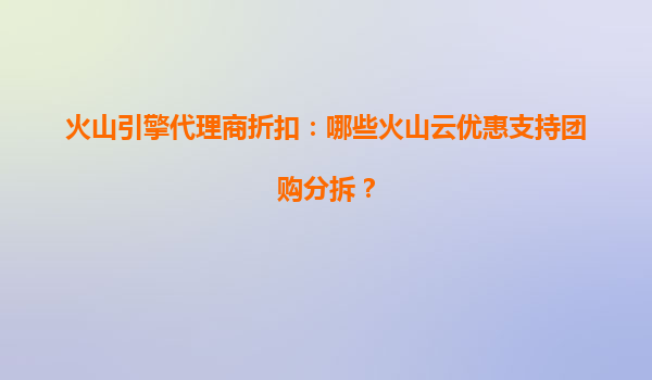 2025-08-11火山云代理商折扣政策解析:团购分拆优惠详解 火山云的核心优势与市场竞争力 作为字节跳动旗下的云计算服务品牌,火山云凭借其强大的基础设施和创新的技术架构,在云计算市场快速崛起。其全球部署的数据中心节...