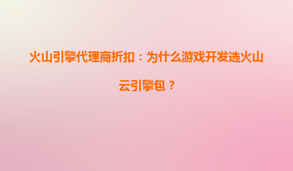 2025-08-11火山云引擎包:游戏开发的理想选择 在当今竞争激烈的游戏市场中,开发者们需要高效、稳定且成本优化的云服务来支撑项目快速迭代与全球部署。火山云引擎包凭借其技术优势与代理商折扣政策,成为越来越多游戏团队的...