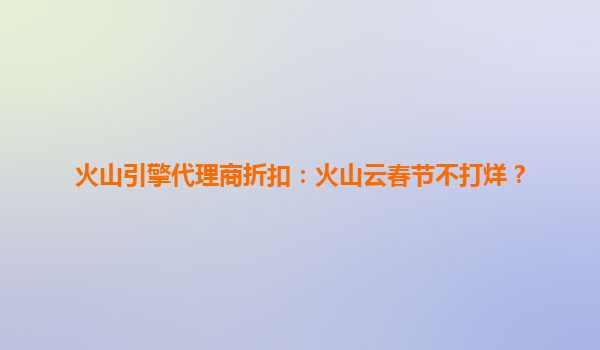 2025-08-11火山引擎代理商折扣:火山云春节不打烊,助力企业高效上云 随着数字化转型的加速,云计算已成为企业降本增效的核心工具。作为字节跳动旗下的企业级技术服务平台,火山引擎凭借其强大的基础设施和丰富的产品矩阵...