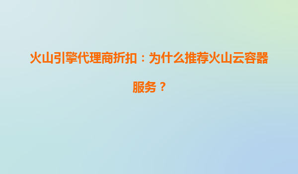 2025-08-11火山引擎代理商折扣:为什么推荐火山云容器服务? 引言 在数字化转型的浪潮中,云计算已成为企业提升效率、降低成本的核心工具。作为字节跳动旗下的云计算品牌,火山引擎凭借其技术积累...