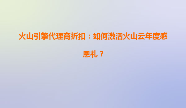 2025-08-11火山引擎代理商折扣:如何激活火山云年度感恩礼 火山云年度感恩礼活动简介 火山云作为火山引擎旗下的云计算服务品牌,近期推出了年度感恩礼活动,旨在回馈广大用户的支持与信任。通过代理商渠道购买火山云...