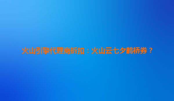 2025-08-11火山引擎代理商折扣:火山云七夕鹊桥券,助力企业云端腾飞 一、火山云的核心优势 在数字化转型浪潮中,火山云作为火山引擎旗下的云计算服务品牌,凭借以下核心优势成为企业上云的首选: ...