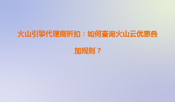 2025-08-09火山引擎代理商折扣:如何查询火山云优惠叠加规则 火山云的核心优势 作为字节跳动旗下的云计算服务品牌,火山云凭借强大的技术实力和丰富的行业经验,为用户提供稳定、安全且高效的云计算解决方案...