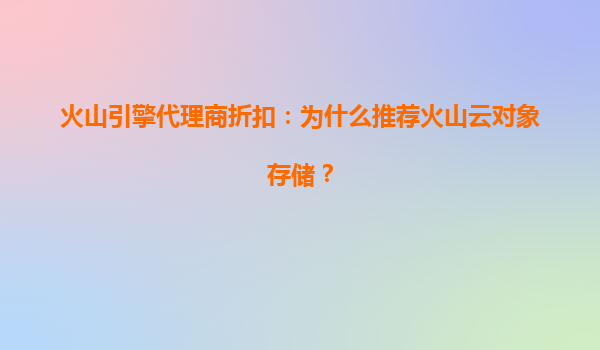 火山引擎代理商折扣:为什么推荐火山云对象存储? 一、火山引擎代理商折扣的价值 选择火山引擎的代理商服务,企业能够享受专属折扣和定制化解决方案。代理商不仅提供价格优惠,还能根据业务需求匹配最佳资...