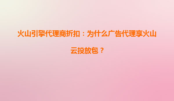 2025-08-09火山引擎代理商折扣:为什么广告代理享有火山云投放包? 在数字化营销的时代,企业越来越依赖云计算和大数据技术来优化广告投放和提升营销效果。火山引擎作为字节跳动旗下的智能科技品牌,推出了火山云这一强大...