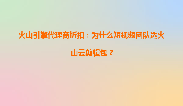 2025-08-09火山引擎代理商折扣:为什么短视频团队选火山云剪辑包? 一、火山引擎代理商折扣:降低短视频团队成本 对于短视频团队而言,成本控制是核心诉求之一。通过火山引擎代理商提供的折扣政策,团队可以显著降低云剪...
