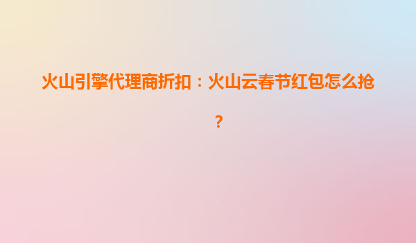 2025-08-09火山云春节红包活动来袭多重福利等你解锁 随着春节临近,火山云为回馈广大用户及合作伙伴,特别推出"春节红包"限时福利活动。作为火山引擎官方认可的代理商,我们在此为您详细解读活动规则,并带您深入了解火山...