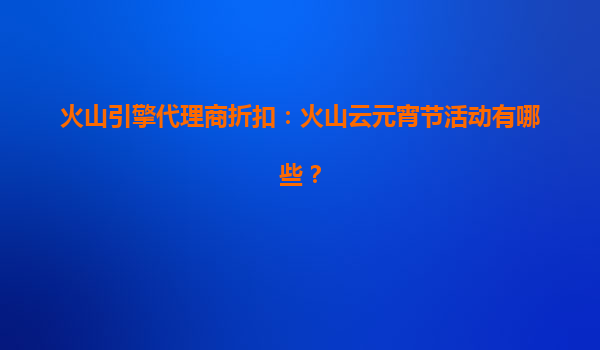2025-08-08火山云元宵节活动重磅来袭多重福利助力企业上云 随着元宵佳节的临近,火山云特别推出"云上闹元宵"系列优惠活动,为企业客户带来实实在在的福利。作为国内领先的云计算服务商,火山云始终致力于为企业提供稳定...