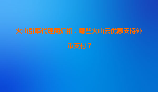 2025-08-08火山引擎代理商折扣:哪些火山云优惠支持外币支付? 一、火山云的核心优势 火山云是字节跳动旗下的云计算服务平台,依托字节跳动强大的技术积累和全球化基础设...