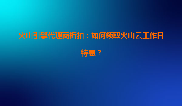2025-08-08火山云工作日特惠:如何领取代理商折扣? 火山云作为字节跳动旗下的云计算服务品牌,凭借其稳定、高效、安全的特性,已成为众多企业数字化转型的首选。对于希望通过代理商享受更优惠价格的用户来说,了解如何领取火...