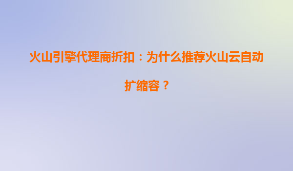 2025-08-08火山引擎代理商折扣:为什么推荐火山云自动扩缩容? 一、火山引擎代理商折扣的价值 作为火山引擎的代理商,客户可以通过合作渠道享受专属折扣,降低企业上云成本。而火山云的自动扩缩容功能,正是代...