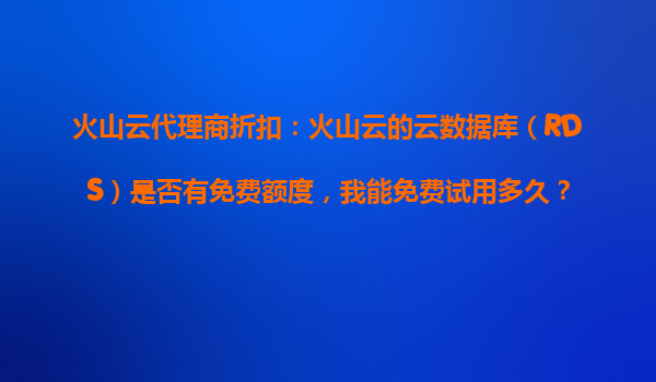 2025-10-28火山云代理商折扣:火山云数据库(RDS)免费额度与试用政策解析 一、火山云RDS是否有免费额度?试用期有多久? 火山云为吸引新用户体验其云数据库(RDS)服务,确实提供了免费试用额度。目前政策如下: ...