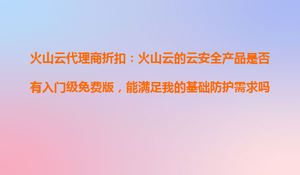 2025-10-28火山云安全产品:入门级防护的免费解决方案 火山云安全产品的核心优势 火山云作为领先的云计算服务提供商,其云安全产品以高性能、高可靠性和智能防护为核心,融合了全球威胁情报...