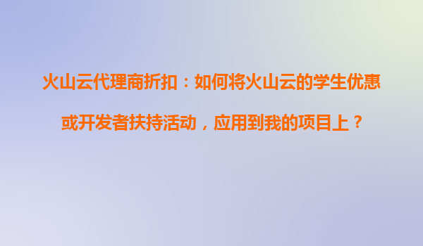 2025-10-28火山云代理商折扣:如何将学生优惠与开发者扶持活动应用到项目中? 一、火山云的核心优势 火山云是字节跳动旗下的云计算服务品牌,凭借以下优势成为企业和开发者的首选: ...