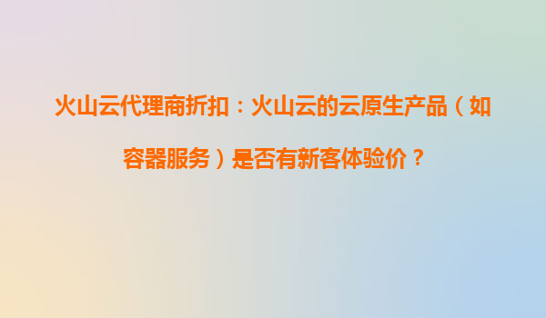 2025-10-28火山云代理商折扣全解析:云原生产品新客体验价与核心优势 一、火山云云原生产品的新用户优惠政策 对于首次接触火山云的企业用户,火山云联合代理商推出了极具吸引力的新客体验价政策。以容...