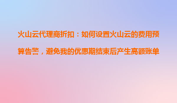 2025-10-28火山云代理商折扣:如何设置费用预算告警避免高额账单 火山云的核心优势 火山云作为领先的云计算服务商,凭借以下优势成为企业和开发者的首选: 弹性伸缩-按需分配资源,支...