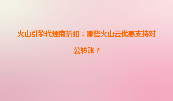 火山云代理商折扣政策解析:对公转账支持的优惠方案 火山云的核心优势与行业竞争力 作为字节跳动旗下的云计算品牌,火山云凭借全球分布式数据中心布局和AI驱动的技术架构,为企业提供高性能、高可用的云服...