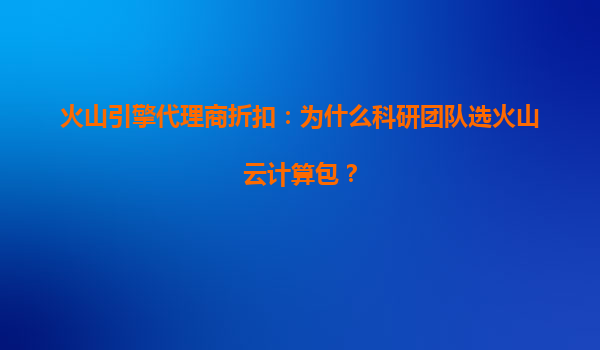 2025-08-06火山引擎代理商折扣:为什么科研团队选火山云计算包? 在当今数字化时代,云计算已成为科研领域不可或缺的基础设施。科研团队需要高效、稳定且成本可控的计算资源来支持复杂的数据分析、模拟计算和人工智能训练...
