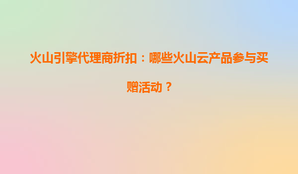 2025-08-06火山引擎代理商折扣:哪些火山云产品参与买赠活动? 一、火山云的核心优势与代理商价值 火山云作为字节跳动旗下的云计算服务品牌,凭借强大的基础设施、AI技术能力和全球化布局,为...