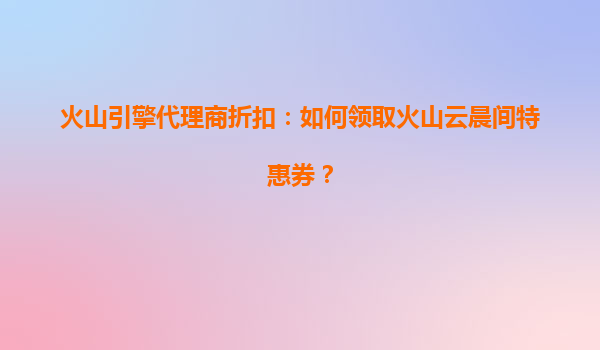 2025-08-06火山引擎代理商折扣:如何领取火山云晨间特惠券? 一、火山云的核心优势 火山云作为字节跳动旗下企业级技术服务品牌,依托全球领先的云计算基础设施和算法能力,为企业提供高效、稳定、安全的...