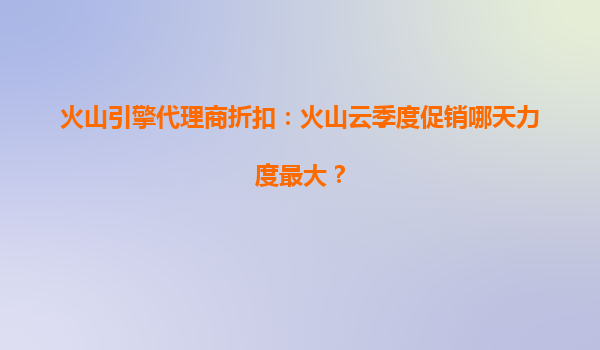 2025-08-07火山云季度促销攻略:把握最佳折扣时机 作为企业数字化转型的重要伙伴,火山云凭借其稳定、高效、安全的云计算服务赢得了众多用户的青睐。而通过火山引擎代理商渠道,用户还能享受更优惠的价格。本文将为您详细介...